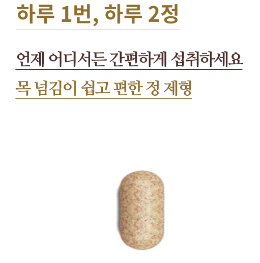 ♠ 언제 어디서든 간편하게 섭취하시면 됩니다. 정제형으로 목 넘김이 쉽고 편합니다.