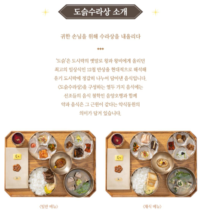 ○ 외소주방 : 도슭수라상 궁중음식체험과 국악공연 관람