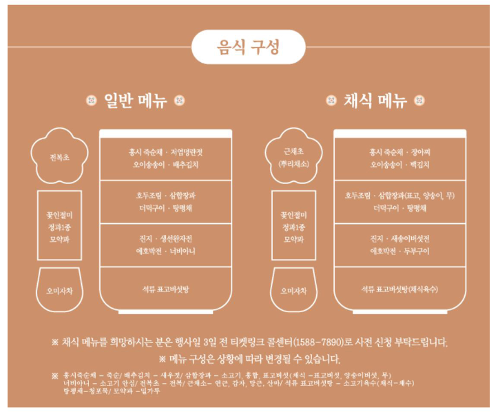 ※ 채식 메뉴를 희망하시는 분은 행사일 3일 전 콜센터(1588-7890)로 사전 신청 부탁드립니다.