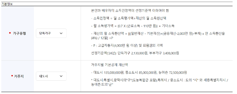 👉 소득인정액 선정기준액 (2024년 기준) 이하