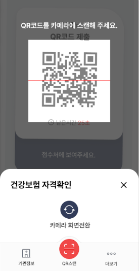 8. 모바일 건강보험증이 발급완료되면, 메인 화면에서 본인 건강보험증을 확인할 수 있습니다. 병원 및 약국 방문시 QR 코드를 제시해주시면 됩니다.