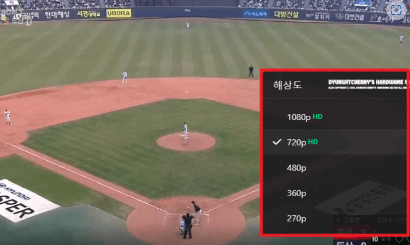Chrome 확장 프로그램 설치 후 네이버 스포츠에서 확장 설치 버튼을 다시 누르면 파일을 다운로드 할 수 있습니다. 이 다운로드된 프로그램을 설치하시면 위와 같은 선명한 화질로 방송이 나오는 경우가 많습니다. 프로그램을 다운로드 할 수 없으신 분들을 위해 파일을 첨부 하였습니다.