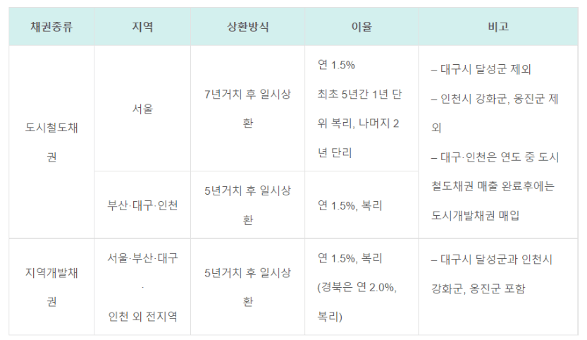 도시철도채권은 대구, 부산, 서울에서 5년, 7년 1회 발행됩니다.