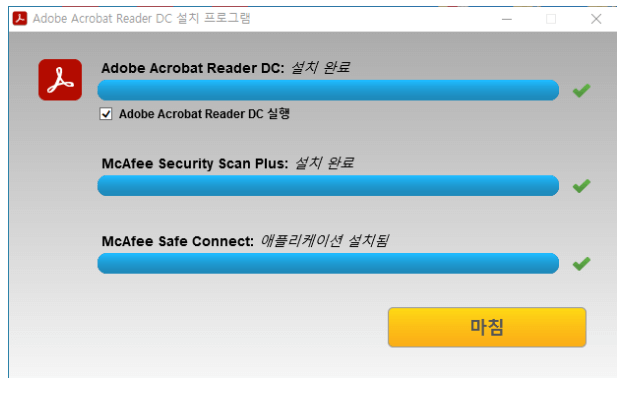☞ Acrobat Reader 설치 완료 후 마침을 클릭해주시면 됩니다.