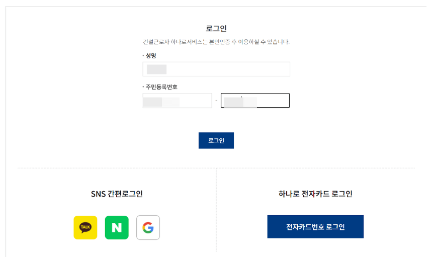 1. 건설근로자 하나로서비스 홈페이지 접속 후 로그인하시기 바랍니다.