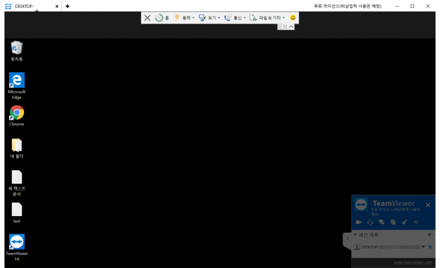 ▶ 원격이 연결이 되면 검정색 화면의 상대방의 컴퓨터 화면이 나오게 됩니다. 마우스를 움직여 보시면 원격제거가 된것을 확인하실 수 있습니다.