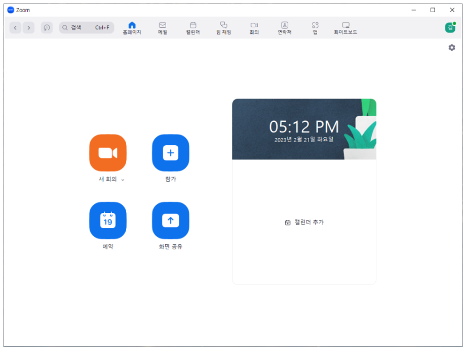 ㉰ 예약 회의를 생성하셨다면, 줌(zoom) 메인 화면 상단의 '회의'를 클릭하시면 됩니다.