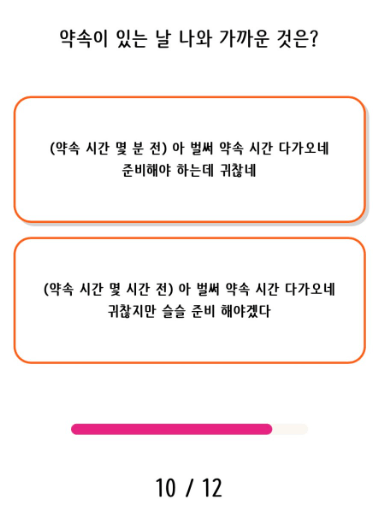 10번째 문항은 약속이 있는날 나와 가까운 것이 무엇인지 잘 생각해보시고 선택하시면 됩니다.