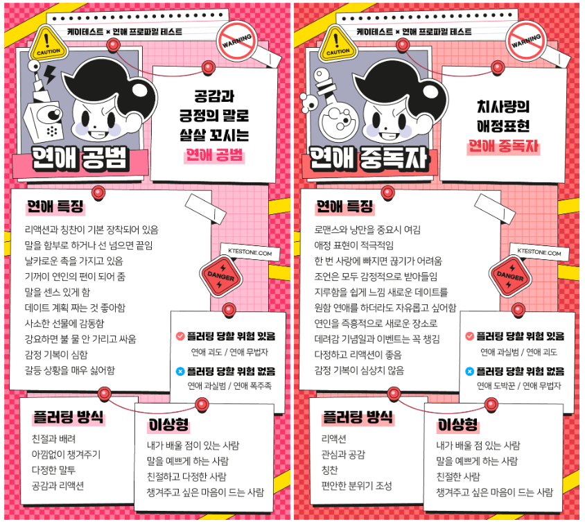케이테스트에서 새로운 MBTI로 알아보는 나의 연애 프로파일 테스트를 공개했는데요. 같이 한번 테스트해도록 하겠습니다.