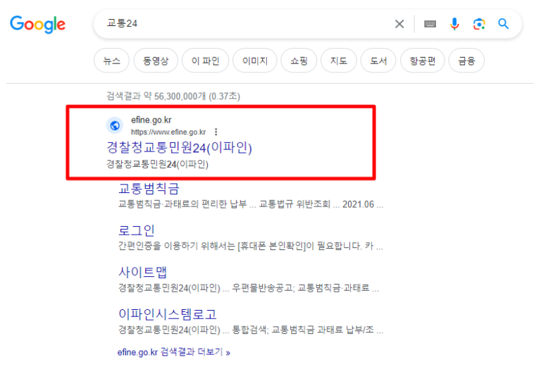 2. 검색창에 교통범칙금 조회 또는 교통민원 24를 검색합니다.
