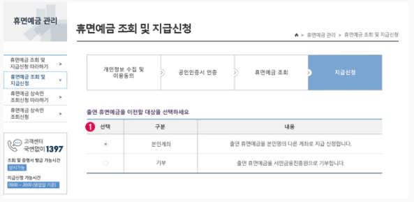 ① 본인계좌 지급/기부 중 선택하시면 됩니다.