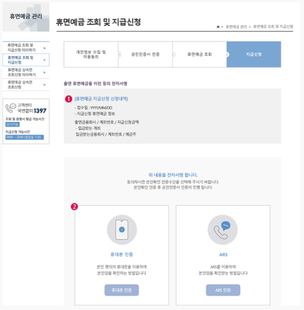 ③ 선택한 휴면예금 지급/기부 신청을 하시면 됩니다.