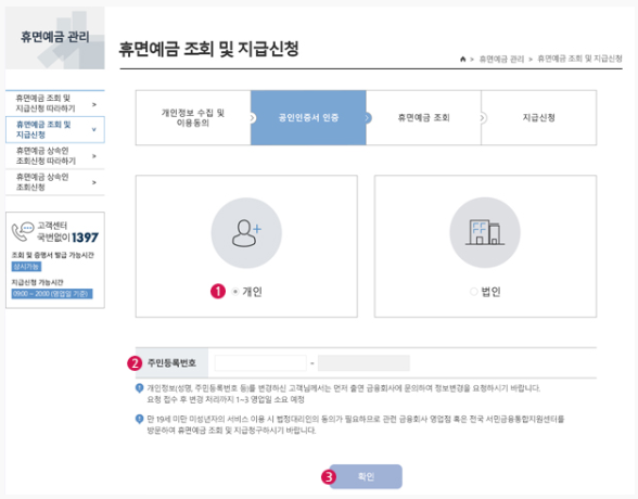 ③ ‘확인’ 버튼 클릭 후 공동인증서 인증을 해주시면 됩니다.