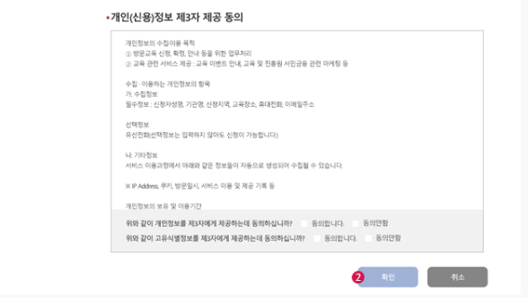 ① 개인정보 수집 및 이용 동의에서 '동의합니다.'를 체크해주시면 됩니다.