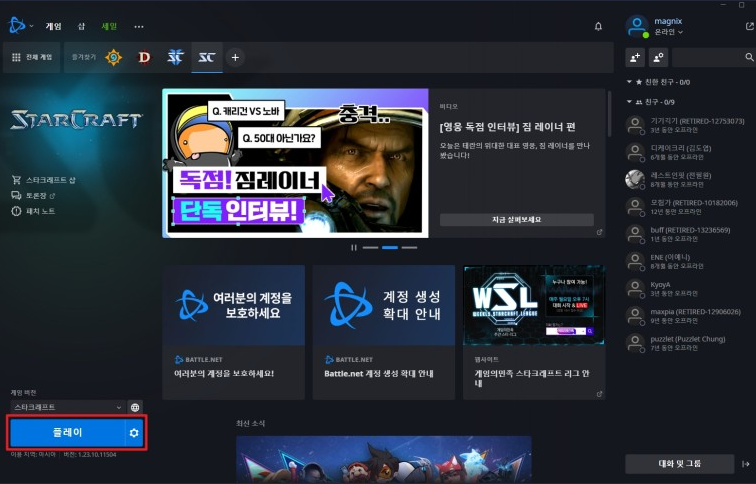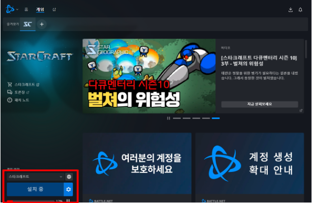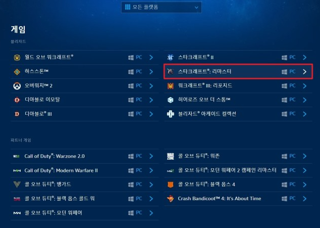 ▶ 배틀넷 로그인 후 스타크래프트 리마스터를 클릭해주시면 됩니다.