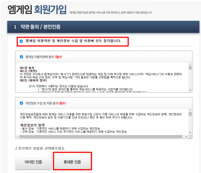 ▶ '화원가입' 버튼을 클릭하신 후 약관동의 및 본인인증을 체크하시고 '휴대폰 인증' 버튼을 클릭해주시면 됩니다.