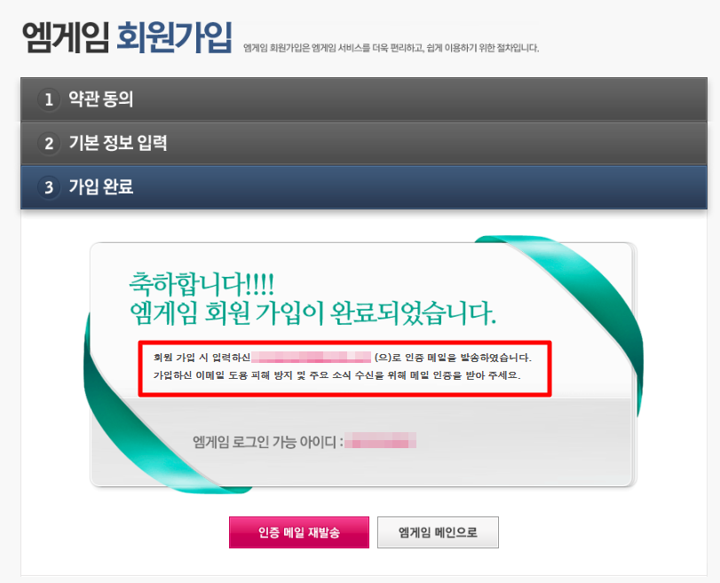▶ '가입하기' 버튼을 클릭하시면 아래와 같이 회원가입이 완료가 되었고 입력한 이메일 주소로 들어가셔서 인증메일까지 클릭하시면 회원가입이 완료됩니다.
