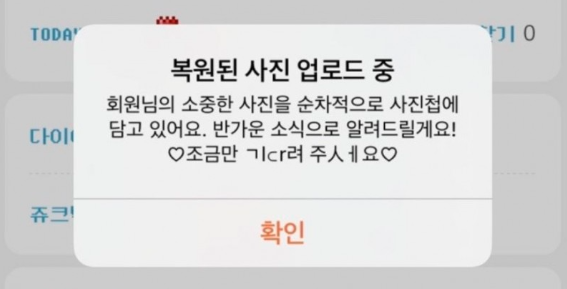 ▶ 사진을 복원하려면 사진첩을 클릭해주시면 됩니다. 참고로 복원된 사진은 다운로드 및 확대가 불가능합니다. 사진 수에 따라 복원되는 시간이 오래 걸릴 수 있습니다.