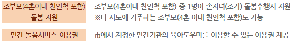 ▶ 조부모/민간 돌봄 서비스 이용 달에 정부지원 아이돌봄 서비스 중복 이용시 해당월 돌봄비 지원 불가
