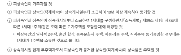 - 거주자의 사망으로 인해 상속이 개시될 때 사망인과의 관계에 따라 자녀나 동거하고 있던 가족에 한하여 공제받을 수 있습니다.