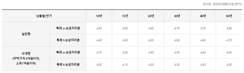 - 대출만기 10,15,20,30,40,50년 (만기 40,50년은 특정 조건을 충족하셔야 합니다.)