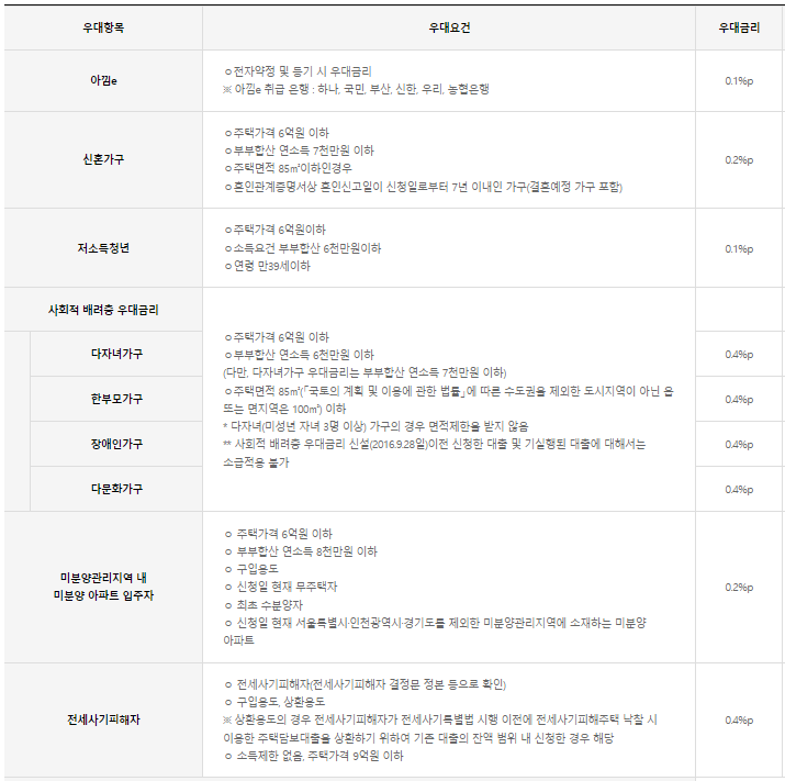 Q.특례보금자리론의 우대금리는 어떤게 적용되는지?