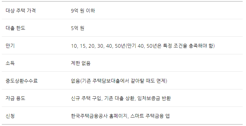 ※ 만 40세 미만 채무자 및 공사가 사전심사한 경우에만 허용하며, 대출만기 50년 적용 불가
