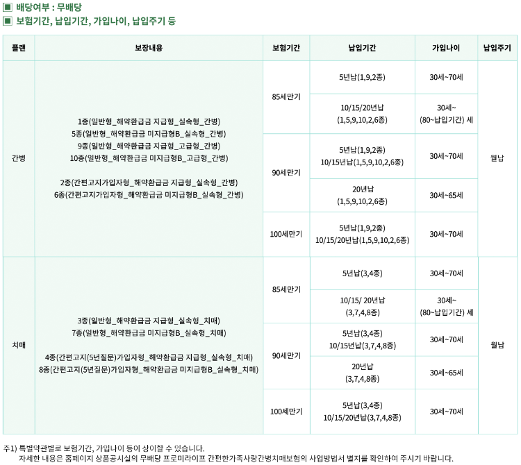 ▣ 1종 일반고지 해약환급금 지급형 실속형 간병