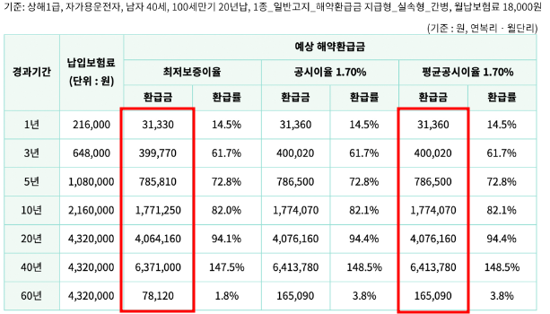 - 무해지환급형은 납입 보험료가 적지만 납입 완료 전 계약을 해지하면 환급금을 돌려받을 수 없습니다. 그렇기 때문에 가계사정 등을 고려해 보험료 납부 가능여부를 확인이 필요합니다. 특히, 보험료가 낮은 탓에 일부 판매사 등은 이를 저축형 보험이나 노후연금 준비 등으로 현혹해 판매를 부추기고 있어 관련 약관의 확인이 요구됩니다.