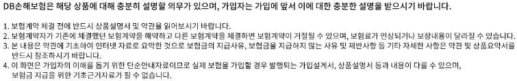 - 상기 보장내용은 이해를 돕기 위해 일정조건에 맞춰 작성된 것이고, 실제 계약내용 등은 달라질수 있습니다.