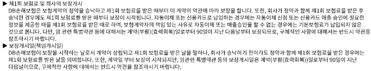 - 보험금의 지급사유, 보험금을 지급하지 않는 사유 등 기타 세부적인 사항은 약관에 따라 제한될 수 있으므로 반드시 약관을 참조하시기 바랍니다.