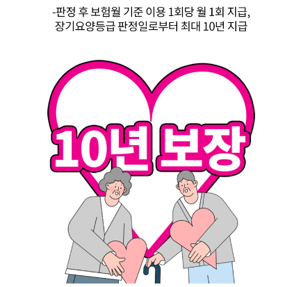 ▶ 집에서 재가간병은 물론, 요양시설 입소도 걱정 NO! 가입금액 10년간 보장 (특약)
