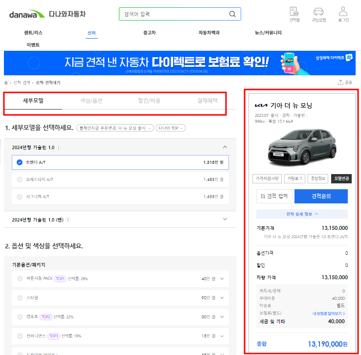 다나와 자동차 신차견적