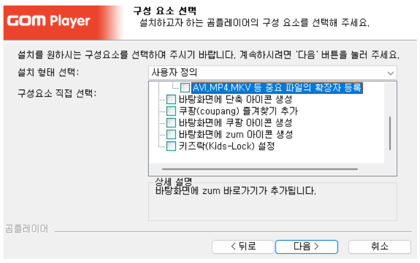 ▶ 구성요소 선택 화면이 나타나면 개인에 맞게 선택 창을 선택해주시고 다음 버튼을 클릭해주시면 됩니다.