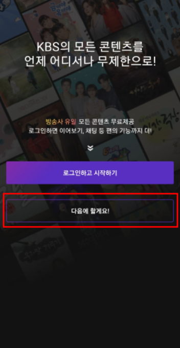 ▶ 로그인을 하지 않코 KBS 온에어를 시청하실 수 있습니다. 회원가입 없시 '다음에 할게요!' 를 클릭해주시면 됩니다.