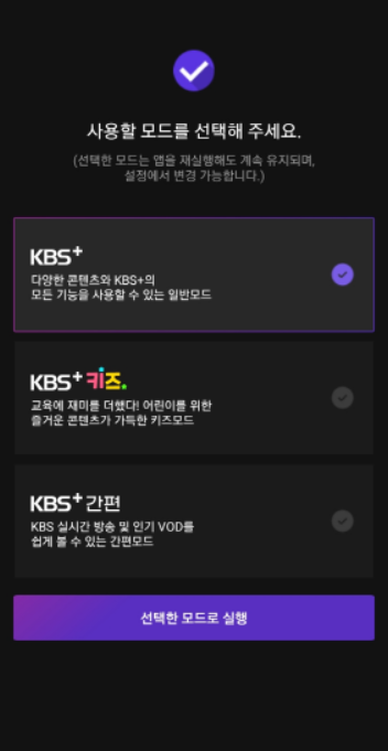 ▶ 사용할 모드를 선택해 주시면 됩니다. 일반모드, 키즈모드, 간편모드 3가지 중에 하나를 선택하시면 됩니다. 일반모드를 선택하겠습니다.