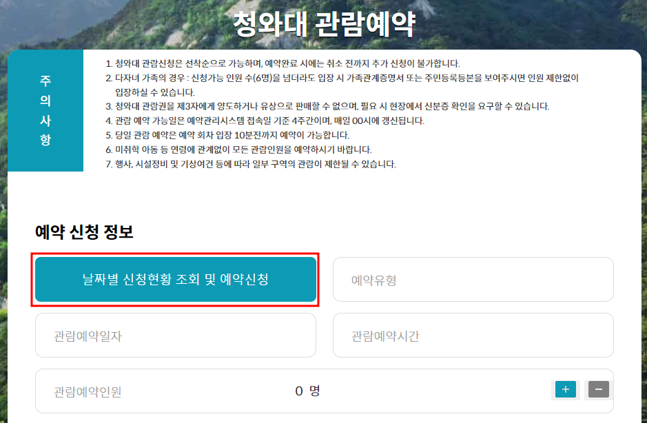 ▶ 청와대 관람 예약하기 사이트에 접속하시면, 화면과 내용이 뜨게됩니다.